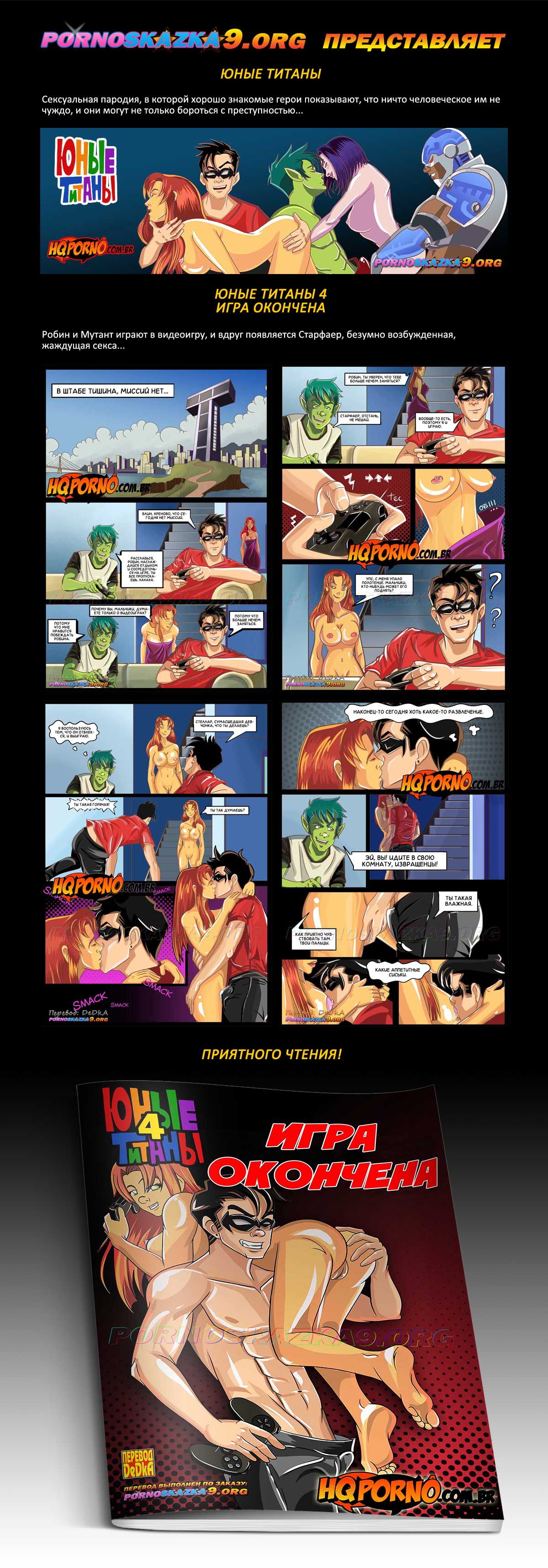 Порно комикс «Юные Титаны. Часть 4. Игра окончена.» Робин и Мутант играют в видеоигру, и вдруг появляется Старфаер, безумно возбужденная, жаждущая секса…